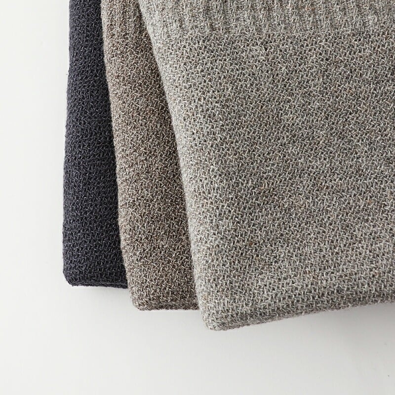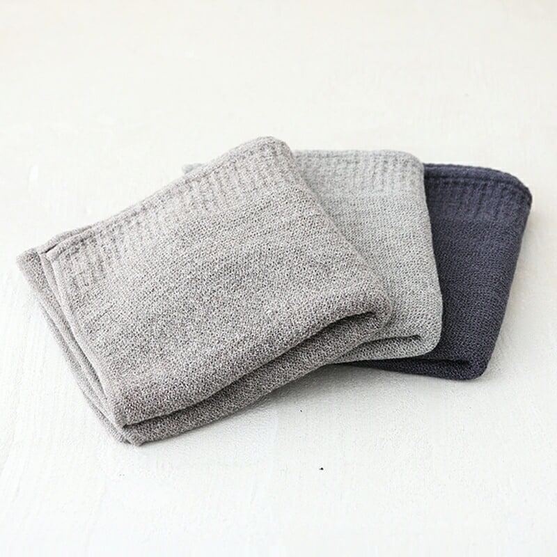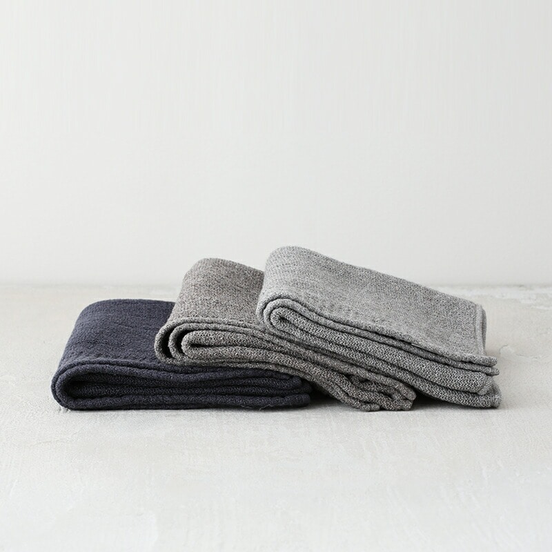 ![]() 持っているだけでセンス良く見える、男女問わずお使いいただけるデザイン。 ![]() ウールニットのような表情で、生活感を感じさせない印象。ただシンプルというのではなく、さり気なくデザインがあしらわれているところが素敵です。 ![]() 吸水性・速乾性にも優れているので、日常使いしやすいのもうれしいですね。 | ||||||||||||