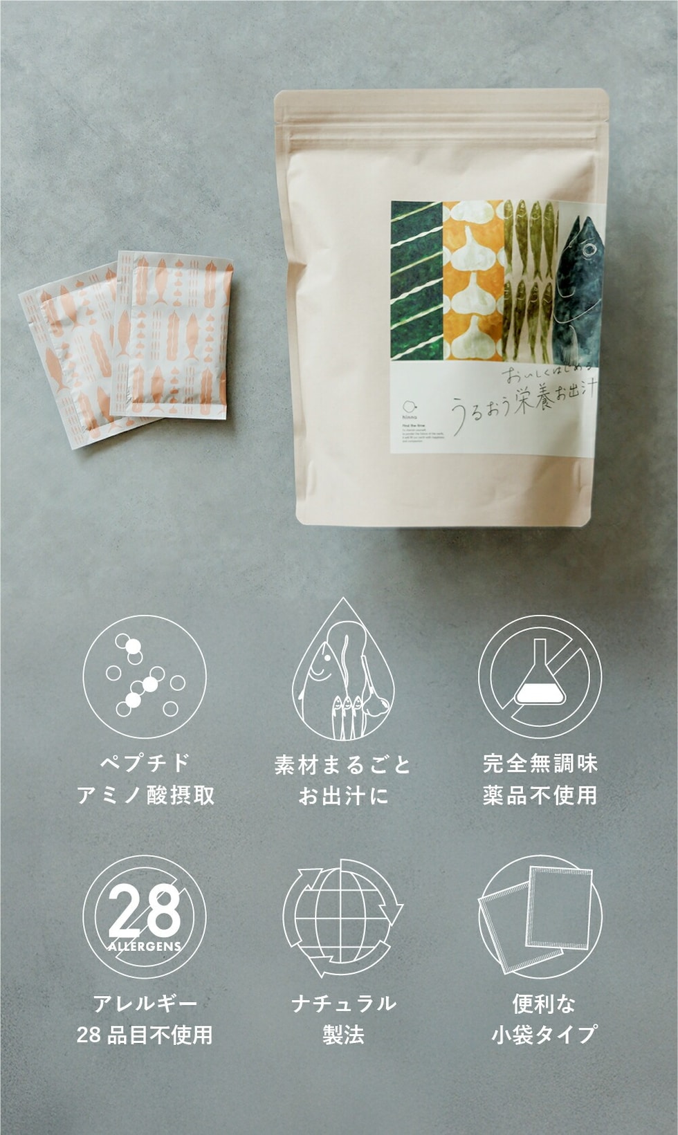 食塩を一切加えていないのにたっぷりとしたうま味があるので、これだけで不思議においしくごくごく飲めてしまいます。塩分が気になる方にもやさしいお出汁です。 | アレルギー28品目不使用、赤ちゃんの離乳食にも。