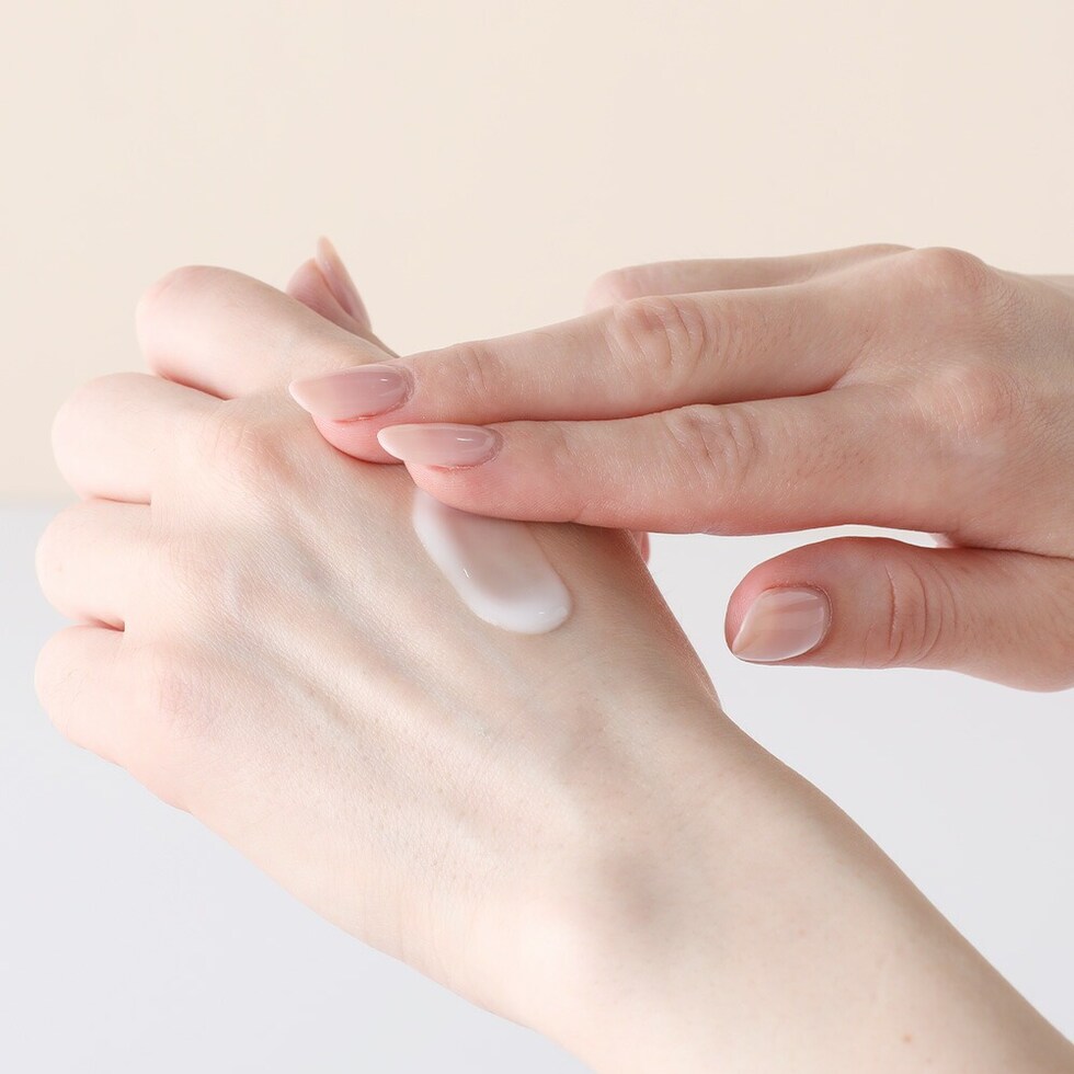 適量を手に取り、手の甲をやさしく包み込むようにして全体になじませます。