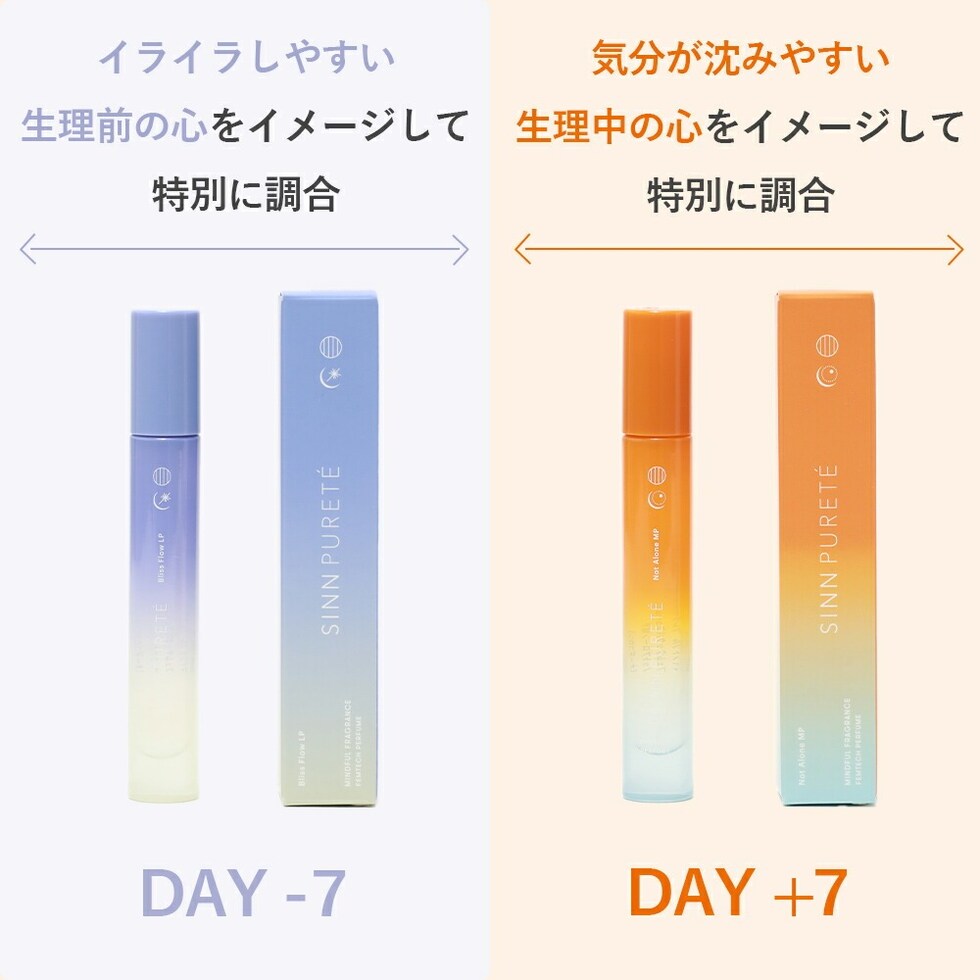 生理前と生理中とでは、女性の心の状態は異なります。だからこそ、それぞれの時期に最適な香りを最適なバランスで調香しているフェムテックパフューム?。 | ご使用方法