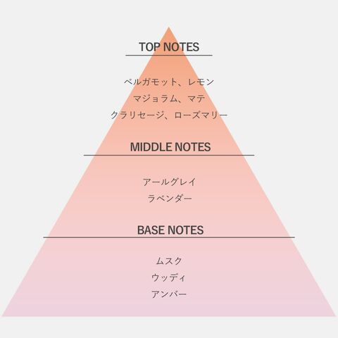 穏やかなティータイムをイメージした、 アールグレイティーの優雅で心地よい香りをベースに、ハーブの爽やかさを加えたリラックスブレンド。デリケートな時期に寄り添うような、やすらぎを感じさせる香り。トップノートは爽やかなベルガモットやレモンにクラリセージ、ローズマリーが心を穏やかにし、ミドルノートのアールグレイとラベンダーが包み込むような癒しをもたらします。ベースノートのムスクやアンバーの余韻が、心が落ち着くような、自然体で心穏やかな時間をサポートします。