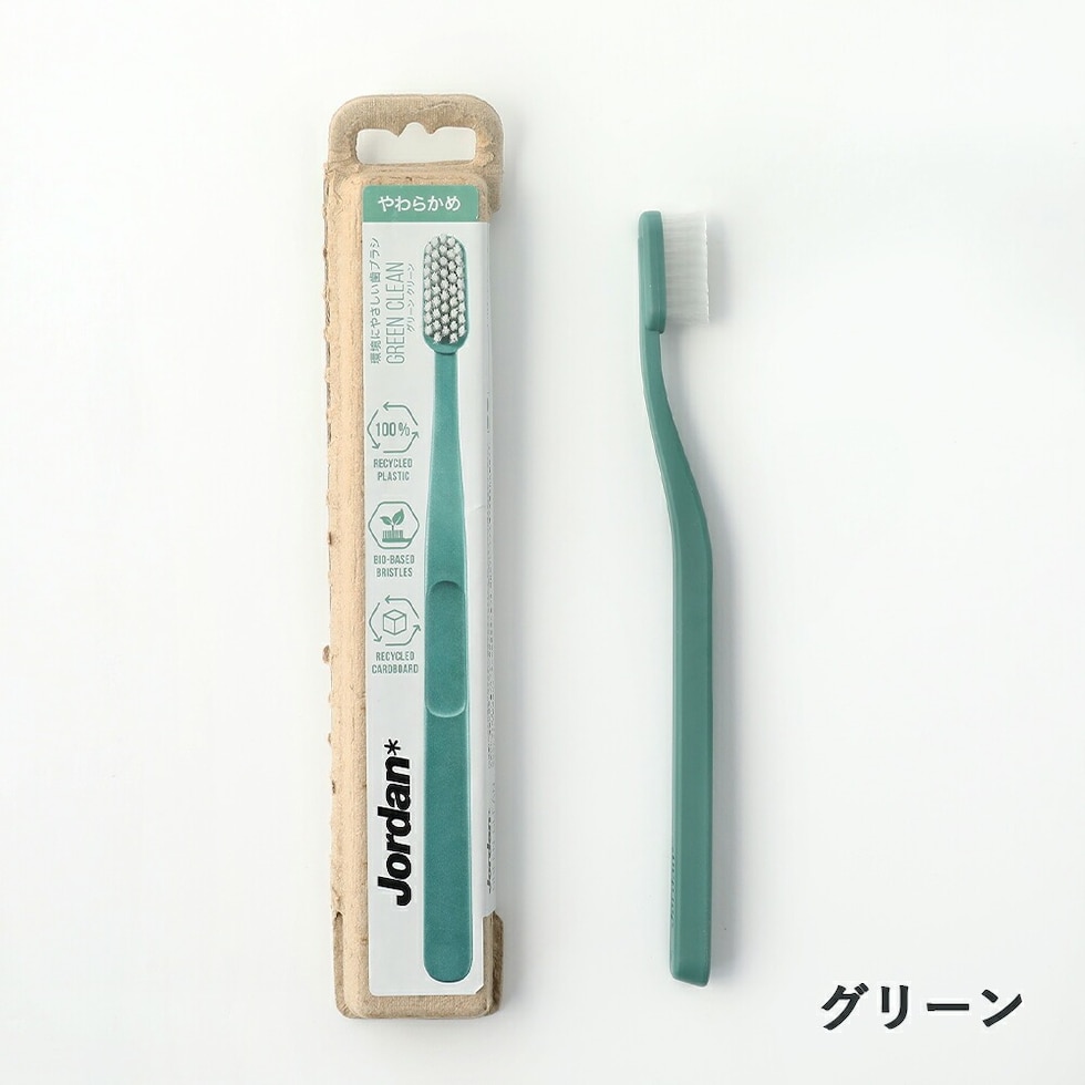 Jordan(ジョーダン)グリーンクリーン 歯ブラシ 大人用 やわらかめ 再生プラスチック 植物性プラスチック サスティナブル 再生資源