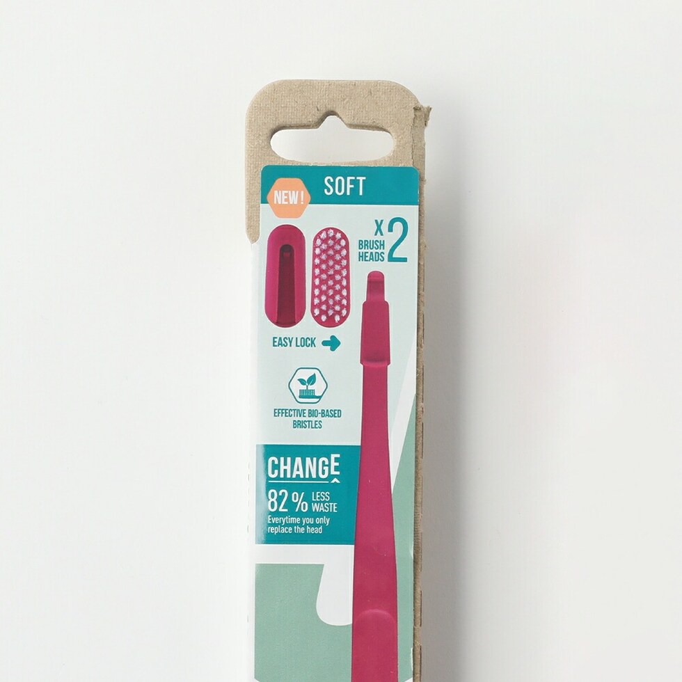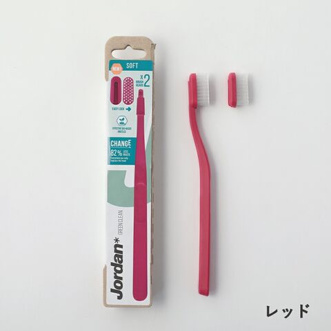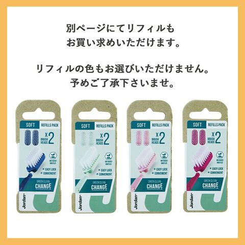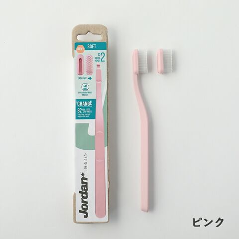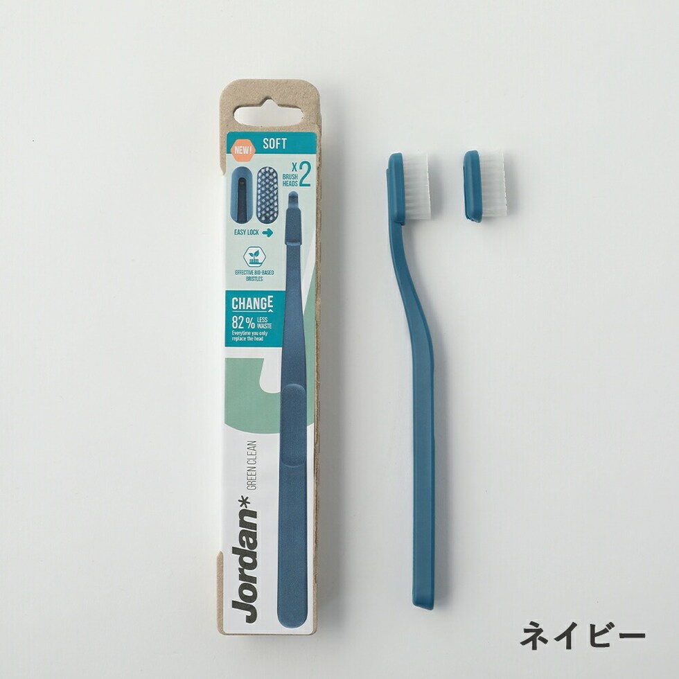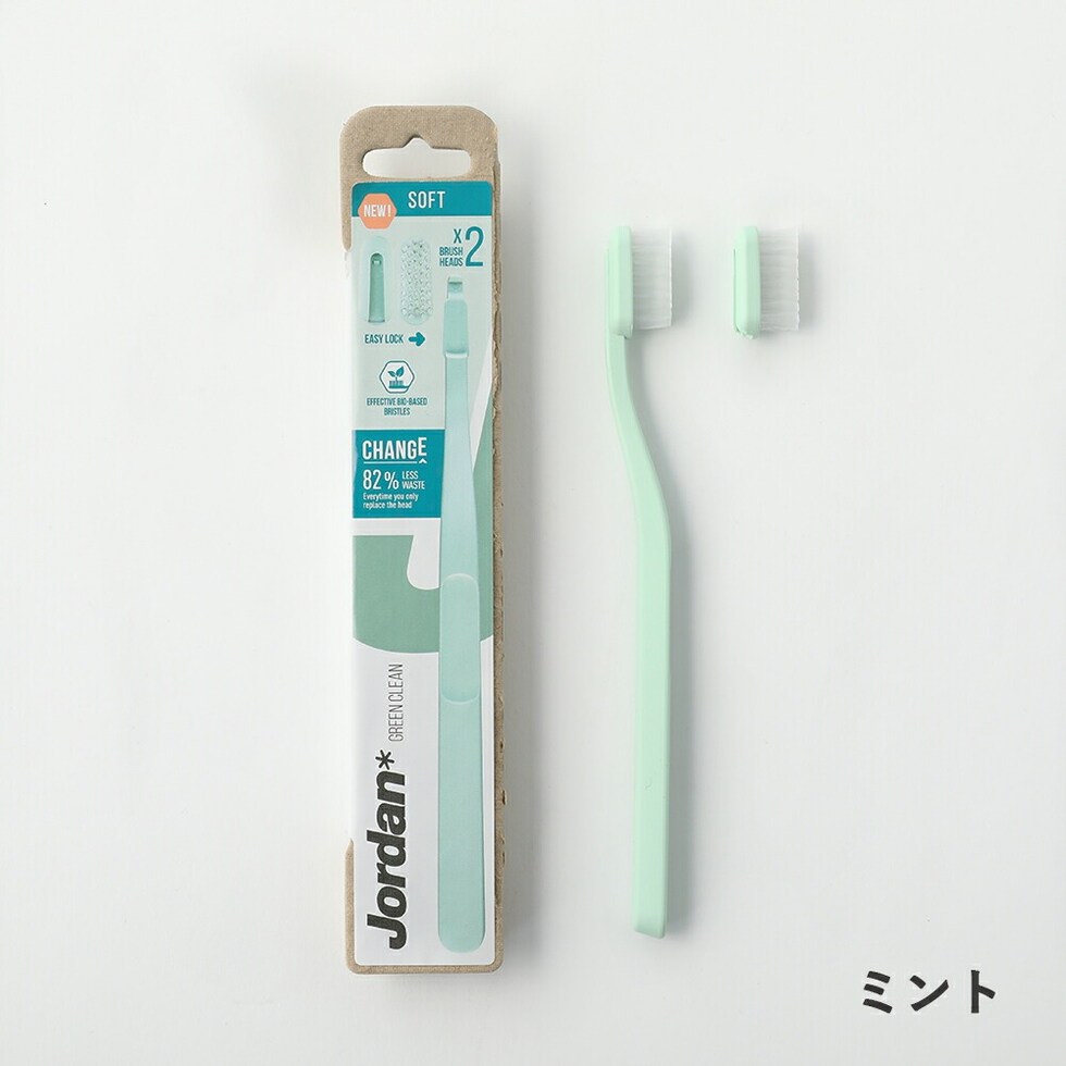 Jordan(ジョーダン)グリーンクリーン チェンジ 歯ブラシ 大人用 ヘッドブラシ2個入り やわらかめ 再生プラスチック 植物性プラスチック サスティナブル 再生資源