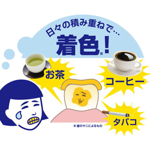 歯の黄ばみ*1の主な原因は、お茶やコーヒーに含まれる色素や、タバコのヤニなどが歯の表面に付着することです。これらの成分は、歯の表面にあるタンパク質と結びついて着色を引き起こします。