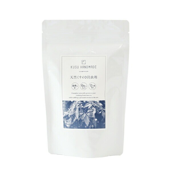 | 九州の楠の森からお届け 古き良き「天然樟脳」で自然派防虫。 KUSU HANDMADE カンフルパウダー(天然樟脳) 4.5g×24パック / 15g×10パック 長くしまっておいたお気に入りの服。いざ着ようと出してみたら、防虫剤のにおいがしっかり染みついていてすぐに着れない…。天然の樟脳(クスノキの結晶)なら、そんな心配はありません。 九州に多く分布する日本のクスノキは、「くすりの木」を語源とする説があるように、古くから日本の生活になじみ深い、天然の虫よけとして活躍してきました。そのクスノキの結晶、いわゆる「樟脳」が、凝縮された自然の力を発揮します。樹木らしいグリーンな香りに、クスノキ特有のスーッとする清涼感があるのが特徴。清潔感のある爽やかな香りが、衣服につく害虫やいやな生活害虫を寄せ付けません。 独自に行った実験*によればその忌避率は堂々の98.7%。またその香りも、風にさらせばサッと消えてしまうので、久しぶりの服も、いつでも真新しく爽やかな気持ちで着ることができます。 | |||||||||||||||