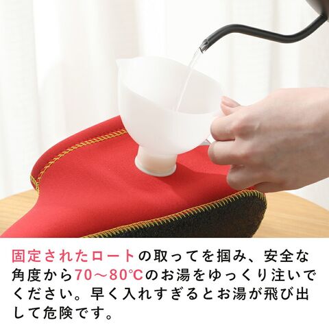 まるで足湯に浸かっているように、ぬくぬく温まる。 まるで自宅で手軽に体験できる、濡れない足湯みたい。 ※湯たんぽは、素材のクロロプレンゴム特有のにおいがあります。 使い始めはおふとんににおいがうつることがあるので、お手数ですが、ご使用前に薄めた中性洗剤やボディソープなどで手洗いしてからお使い頂くことをお勧めします。