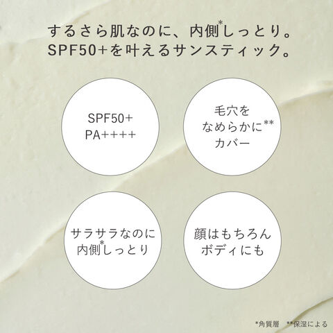 空気のような軽さと透明感*1。 するすると肌の上を滑らせるだけで、頼もしい薄膜UV対策が叶うサンスティック。 ※すべての人に刺激が起こらないわけではありません | こんな方にオススメ