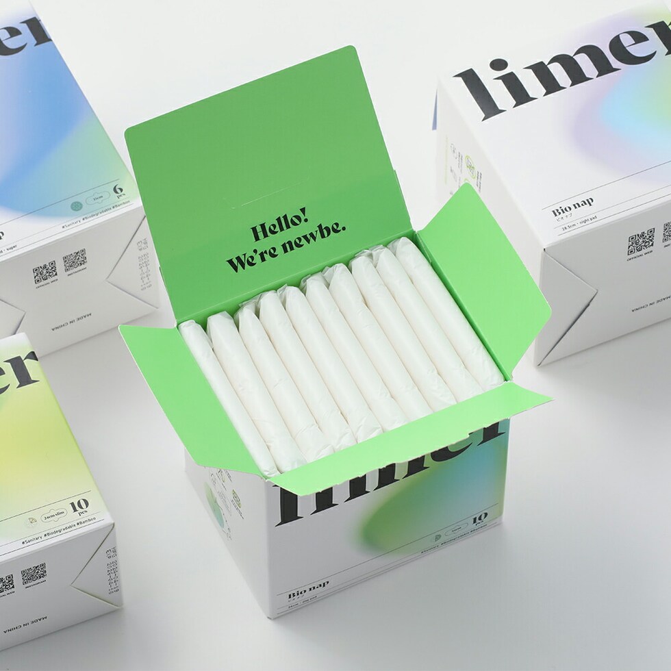 limerime(ライムライム)バンブーサニタリーパッド 24cm 10枚入り 昼用 羽根ありふつう 生理 羽根付き 竹 ふんわり さらり 羽つき フェムテック 環境配慮 通気性 ムレ ニオイ