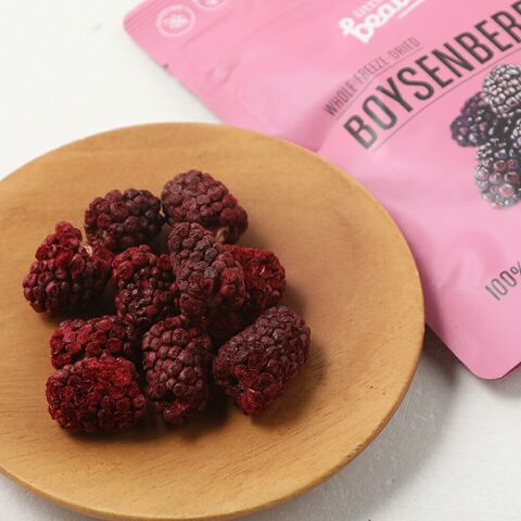 ニュージーランドの夏の果物の1つで親しまれているラズベリー。日照時間の長いネルソンで採れたラズベリーをそのままフリーズドライしました。ラズベリーそのままの味とサクサクの食感をお楽しみいただけます。ラズベリーには、ビタミンCとアントシアニンが多く含まれ、栄養価が高いスーパーフードとして知られています。 | ボイセンベリー