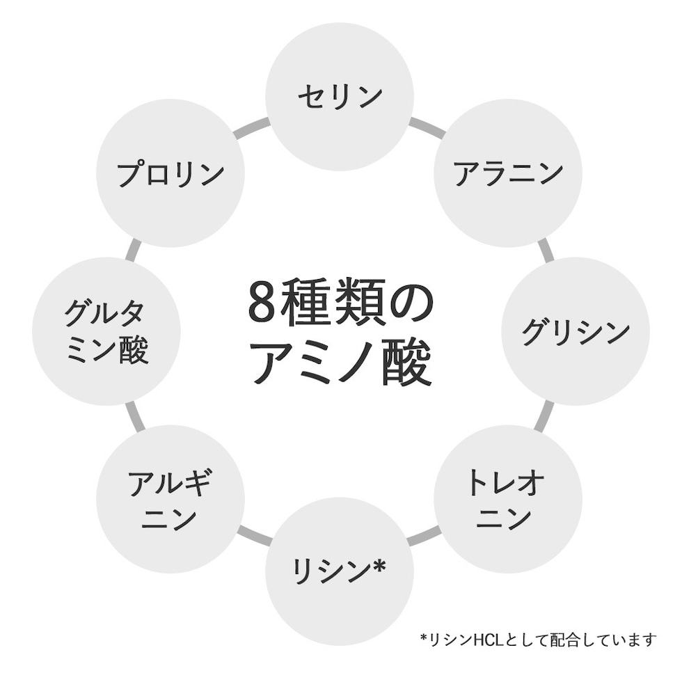 乾燥・敏感、脂性・混合、どんな肌にもアミノ酸補給を。 角質層に水分をとどめ、肌を乾燥から守っている天然保湿因子(NMF)の40%はアミノ酸です。しかし、肌の乾燥などが影響してアミノ酸が減少すると、角質層の水分保持機能も低下して肌トラブルの原因になります。 |ご使用方法 洗顔または化粧水の後、1~2プッシュ分を手のひらに取り、顔全体にのばします。