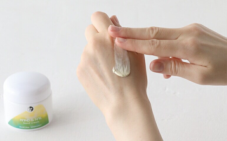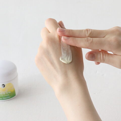 使用方法![]() 小さじ1杯程度を取り、よく肌になじませます。台所仕事や作業の前後など、必要と感じたときにいつでもご使用ください。 | |||