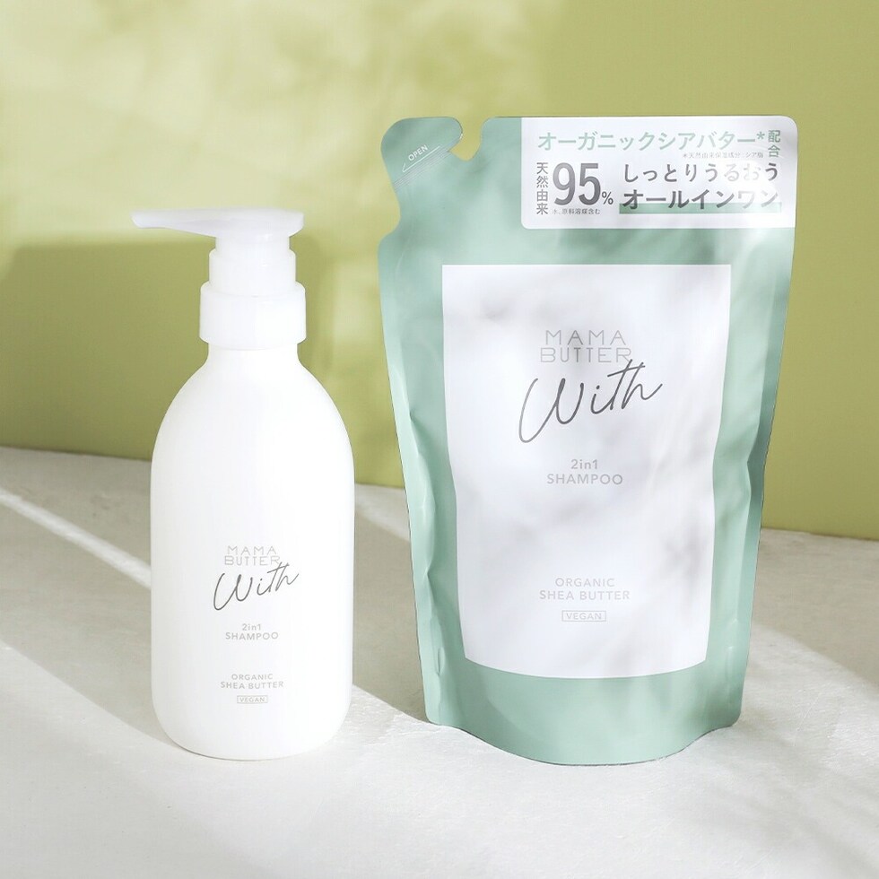 MAMA BUTTER ママバター ウィズ 2in1シャンプー 300ml 詰替え 無香料 ヘアケア オーガニックシアバター シア脂 シアバターしっとり オールインワンシャンプー パサつき ごわつき 熱ダメージ 静電気抑制
