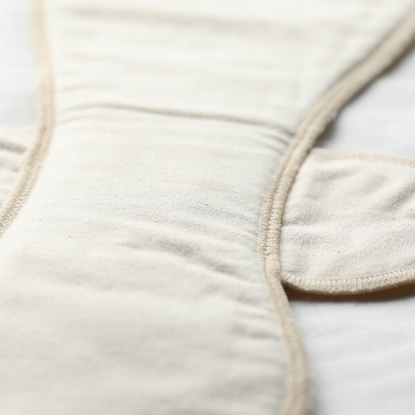 スナップボタン以外は縫い糸まで100%オーガニックコットン。製造時にも脱脂や漂白、染色などの化学的な処理は行わずに、天然の優しい風合いをそのまま残しています。 メイド・イン・アースの布ナプキンは吸水・防水のための化学繊維を使用せず、無漂白、無染色。生地の表面につぶつぶとしたコットンの葉のかけらなどが稀に残っていることがありますが、繰り返し洗濯するうちに自然となくなります。 |
