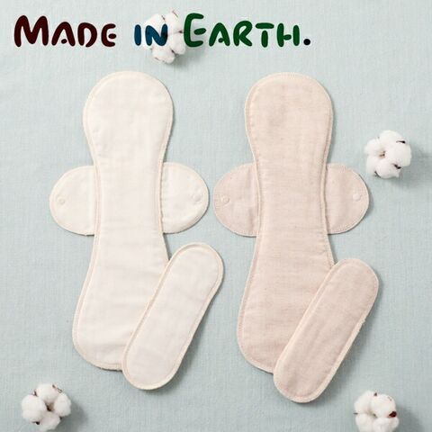MADE IN EARTH.(メイドインアース) 布ナプキン 夜用ロング 【きなり / 茶】 / 布ナプ 夜用 多い日 ロング スーパーロング オーガニック オーガニックコットン ホルダー バッド付き 37cm サニタリー パット パッド