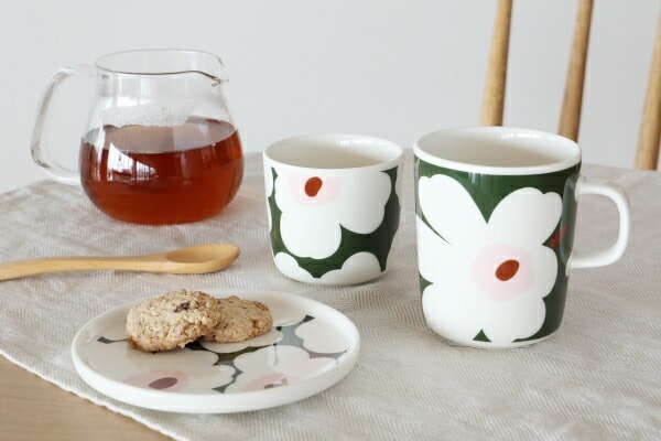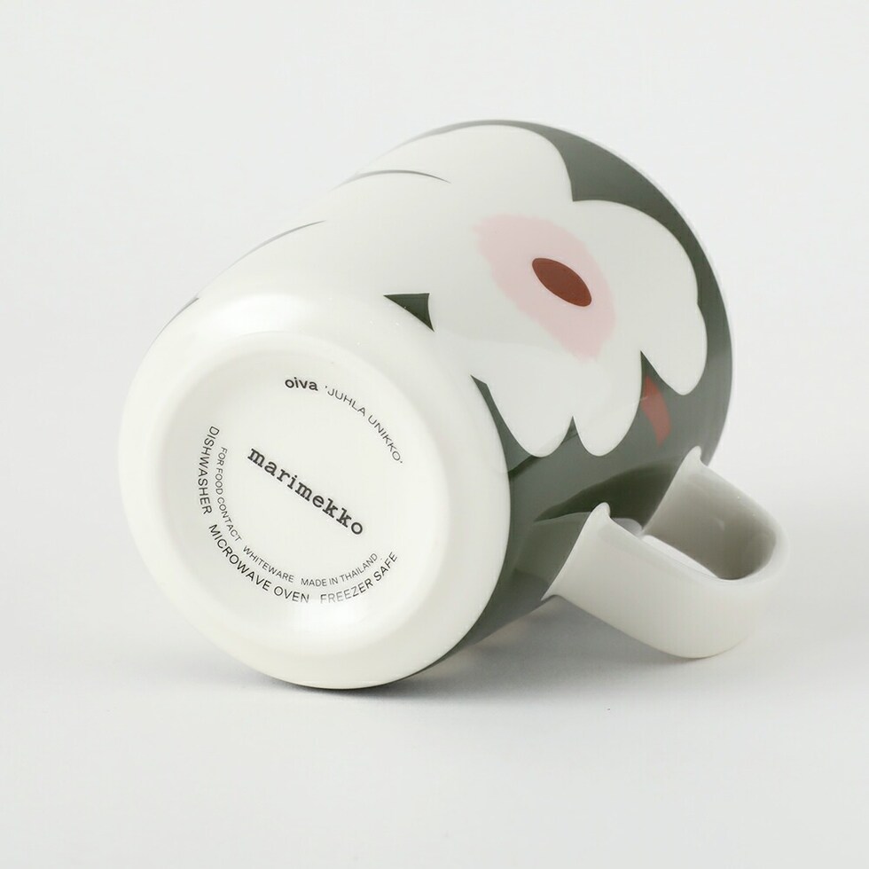 【正規品】【日本限定】marimekko / マリメッコ Juhla Unikko(ユフラウニッコ) マグ 250ml カラー49 ホワイト×ダークグリーン コーヒー 花柄 マグカップ プレゼント ギフト おしゃれ 2025春夏