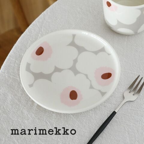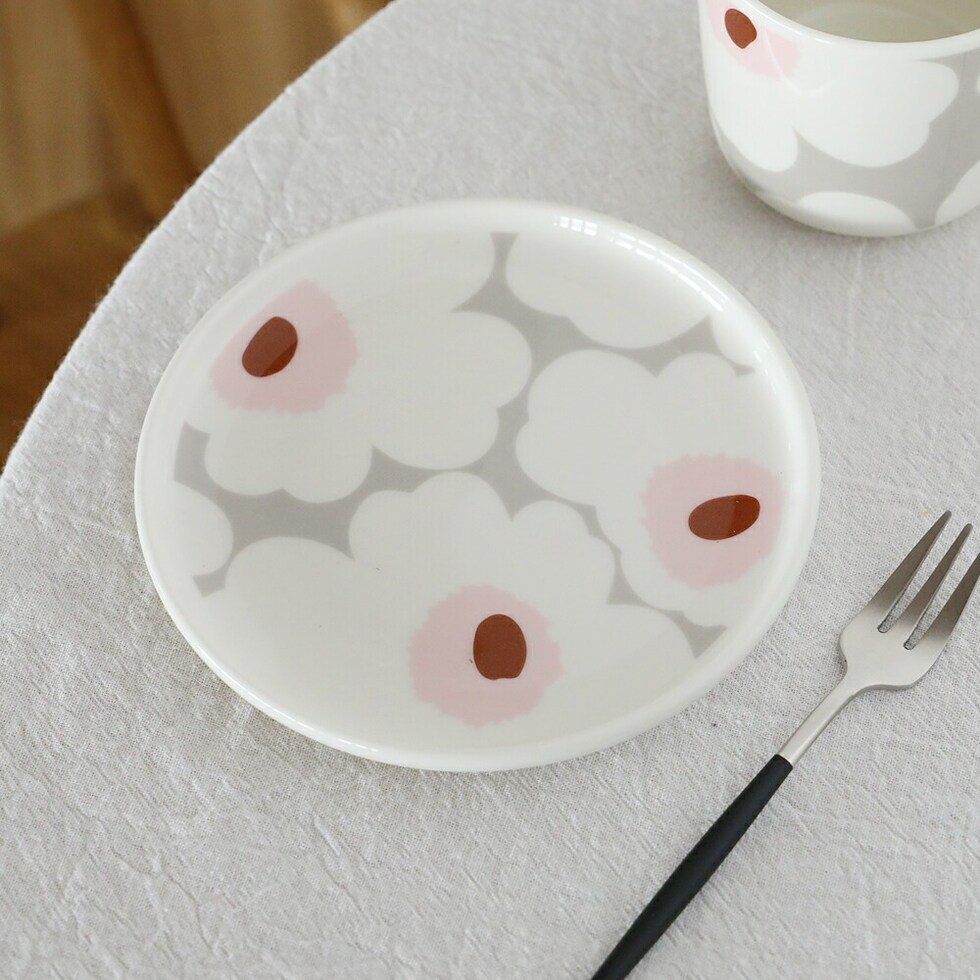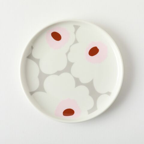 【正規品】【日本限定】marimekko / マリメッコ Unikko(ウニッコ) プレート 13cm カラー80 ライトグレー×ライトピンク 花柄 皿 丸皿 プレゼント ギフト おしゃれ 2025春夏