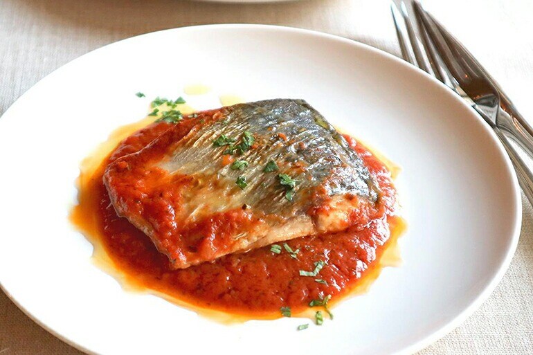 トマトソースで煮ることで、鯖の臭みをやわらげることも◎