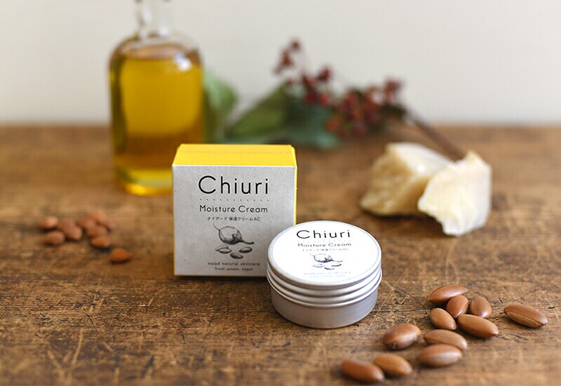 バターのようにちょっと固めのバームを手にとれば人肌でじわっとゆるんで、もちもちいたわるように馴染ませれば、肌本来の脂のような自然な感触に仕上がります。 スキンケアによくあるクリームやオイルコスメのように、使った後に「塗った感」という違いが残るわけでもなく、乾いたと感じる肌を乾く前の肌に戻したような、本当のナチュラルともいえる使い心地のクリームです。 はじまりは、ネパールでの「チウリ」という植物との出会いから。果実は食べ、果汁で酒をつくり、種でバターを作る。ネパールの山に住む人々の生活に根付くチウリのバターと同じくネパールの山に育つ芳醇なアプリコットオイル、そしてその森のみつばちがもたらすミツロウのたった3つの原料を、五感を研ぎ澄ませて混ぜあわせひとつひとつ丁寧に、このクリームは生まれました。