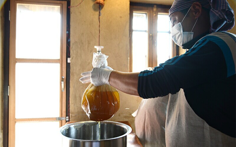 野生の蜜蜂の巣から採取されるミツロウは、季節ごとに異なる植物から蜜を集めるため色や香りもさまざま。