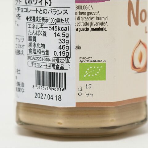 | ノチオラタ オーガニック ヘーゼルナッツチョコレートスプレッド <ホワイト> 250g