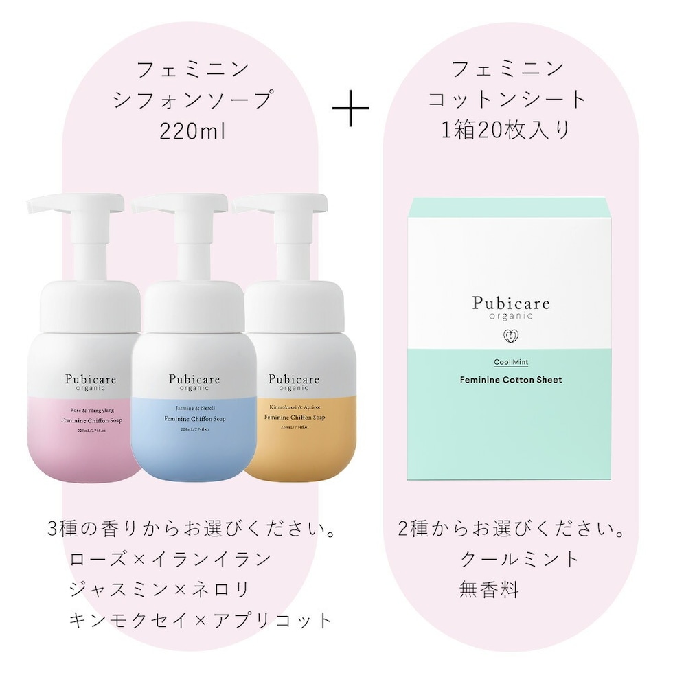 ピュビケア オーガニック (Pubicare Organic) ソープ + シート セット | デリケートゾーン 臭い ケア ボディシート 拭き取り ふき取り ムレ フェムテック フェムケア