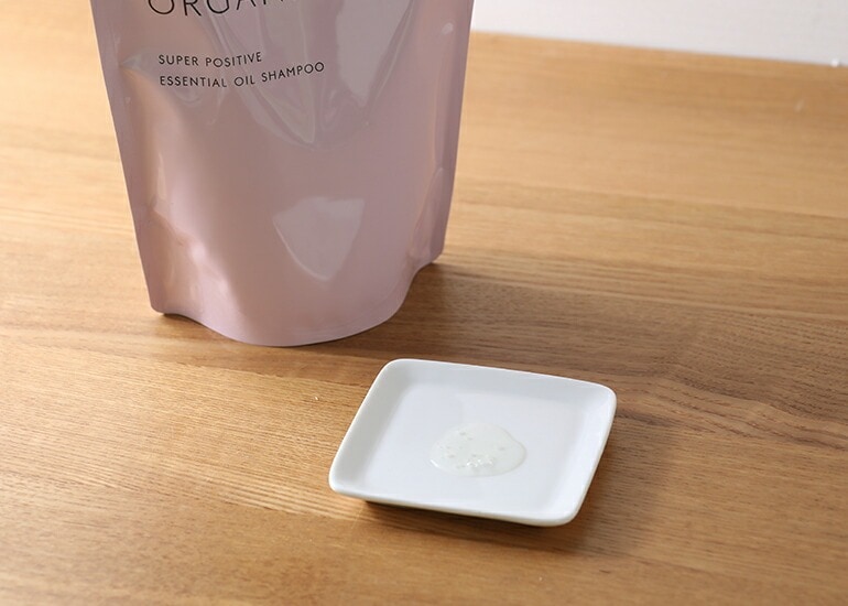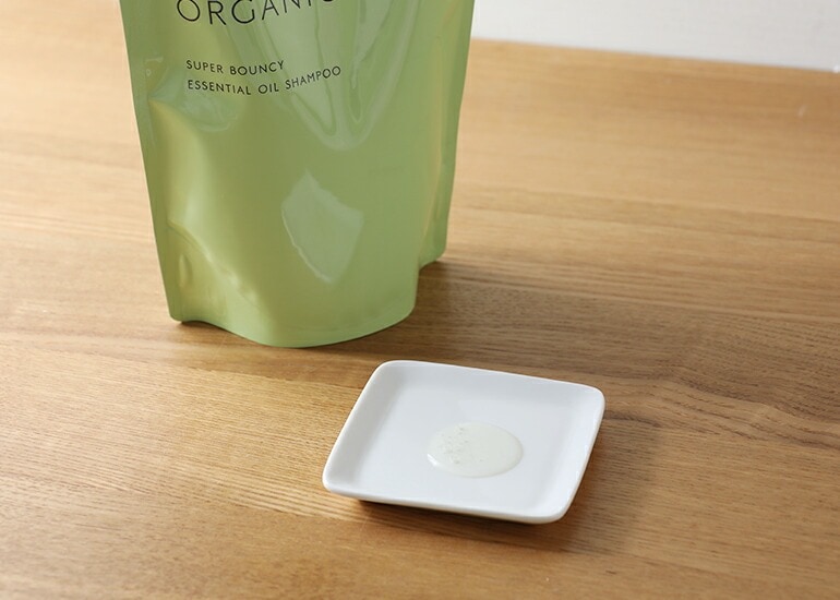 髪と頭皮を十分に濡らした後、適量を手に取り泡立てます。
