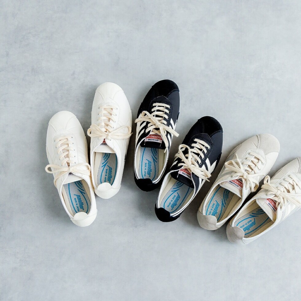 毎日が、さらに軽やかで快適に。 Pantherは1964年に誕生したスポーツシューズブランドで、70年代にはトレーニングシューズの代名詞として人気を博しました。現在は日本のクラフトマンシップで進化し、新たな価値を生み出しています。 パンサーのアイコンモデル『PANTHER DERA』
