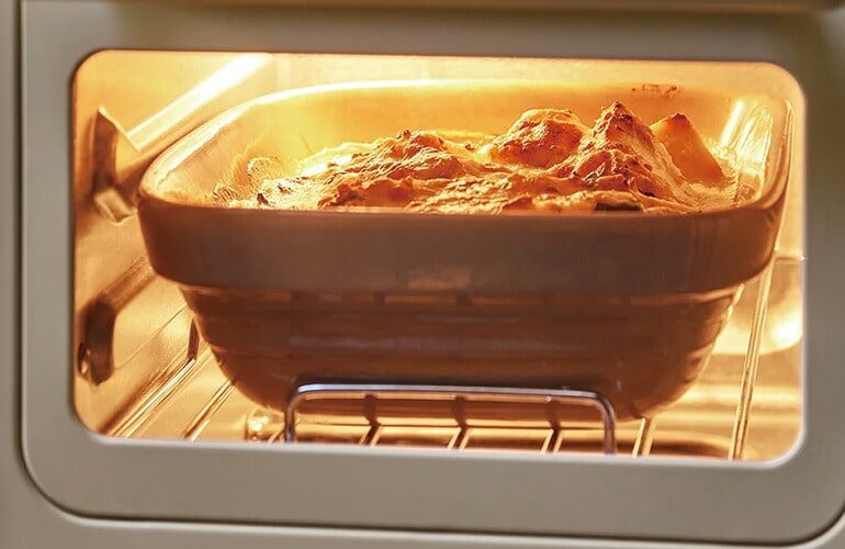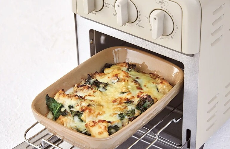 | グラタンやピザはもちろんパイや、クッキーなどの焼き菓子にも オーブン料理も、もちろん得意。庫内がコンパクトだから、設定温度まですぐに温まるので予熱が不要。庫内の熱を逃がさず、しっかり閉じ込めるので、スピーディーに調理ができます。 | |