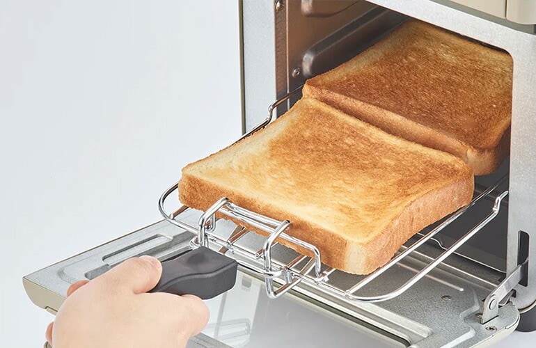| 朝食が楽しみなる、毎日使いたいモード おいしい食パンを焼くことに特化したモードです。庫内を効率よく加熱できる独自設計のM+N型ヒーター(上下ヒーター)を採用。マイコンによる温度制御で食パン自体の水分を生かして、外はサクッと、中はふんわりしたトーストが焼きあがります。食パンが2枚同時に焼けるので忙しい朝に最適です。 | |