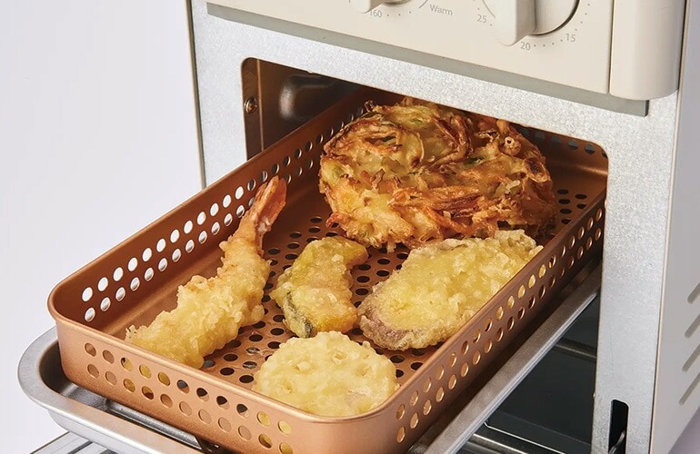 | 4つのモードでおいしさ広がる ひとつ上を行くお料理トースター ノンフライ調理ができる「エアーオーブン機能」を備えたオーブントースター。 | |