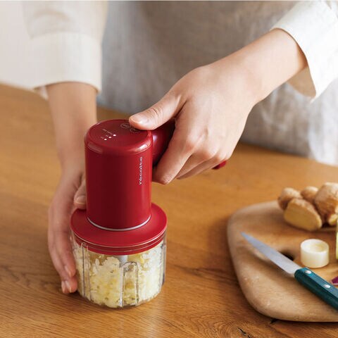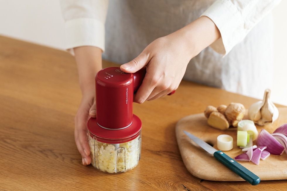 トッピング用の薬味やナッツなど、手軽にみじん切りにできます。にんにく1欠片分から可能です。 | 使いやすいハンドルデザイン