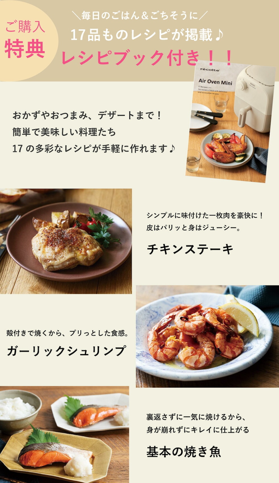 recolte(レコルト)エアオーブンミニ RAO-2 | エアフライヤー フライヤー 電気フライヤー Air Oven ヘルシー ノンオイル コンパクト 揚げ物 グリル 時短 レシピブック レシピ付き 【ラッピング不可】