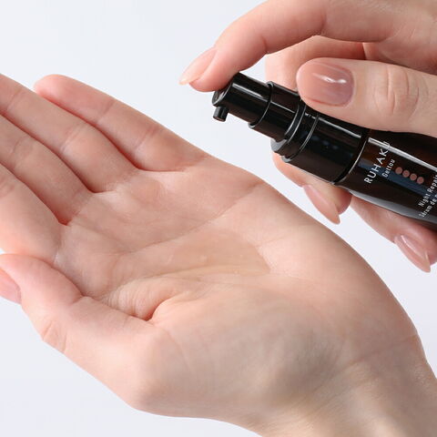 化粧水の後、適量を手に取り、顔全体にやさしくなじませてください。