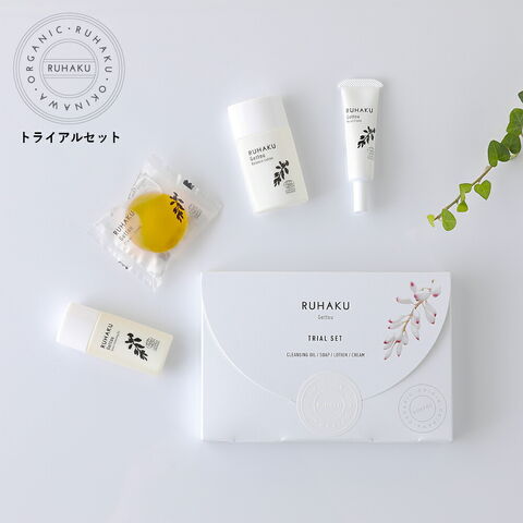 琉白(RUHAKU)トライアルセットS | ルハク るはく 月桃 クレンジング メイク落とし 洗顔 化粧水 ローション クリームオーガニック しっとり 乾燥肌 敏感肌 保湿 エコサート 沖縄 セット キット トライアル