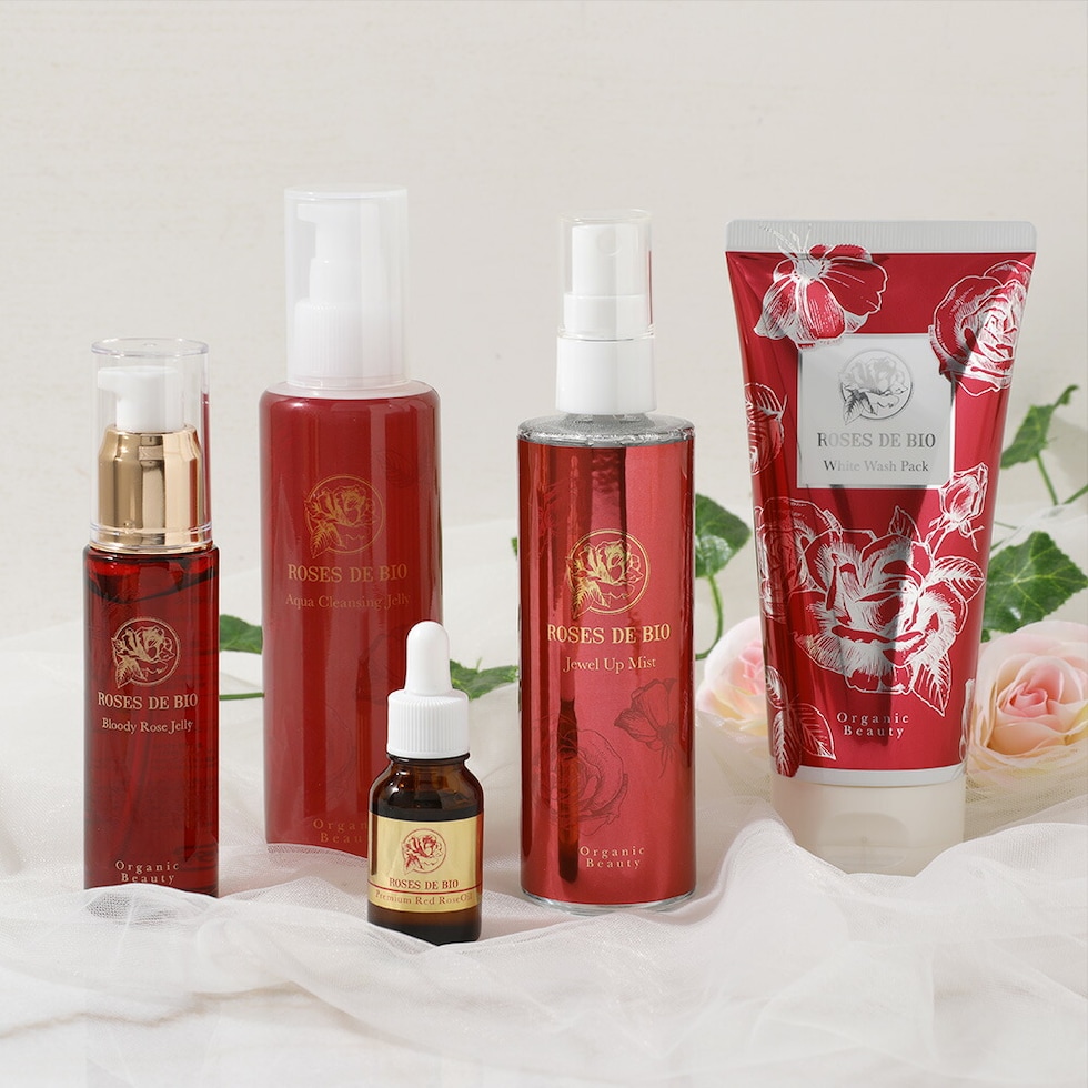 ローズドビオは、オーガニックのローズはもちろんのこと、オーガニック原料、野生原料等をたっぷり用いた100%自然由来の国産自然化粧品です。お肌に優しいだけでなく、エイジングケア*効果を実感でき、忙しい女性でも簡単に使いやすく開発しているのが特徴です。