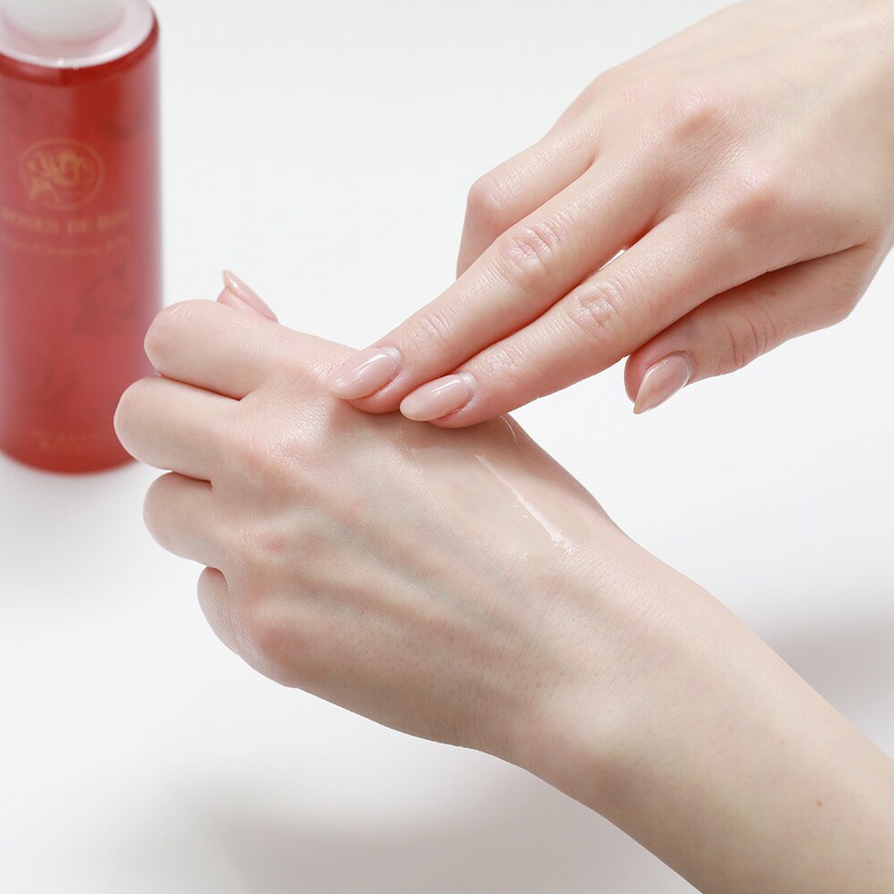 4プッシュを手に取り、そのままお顔になじませ、メイクが浮いたら洗い流してください。通常はダブル洗顔の必要はありません。