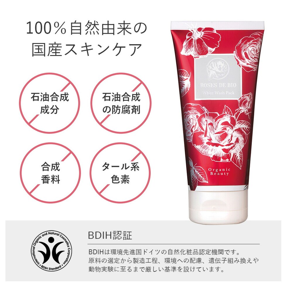 ローズドビオ ROSE DE BIO ホワイトウォッシュパック 150g オーガニック 洗顔 フェイスパック エイジングケア 洗顔フォーム 国産 日本製 毛穴 くすみ 黒ずみ ニキビケア 大人ニキビ クレイパック 泥パック