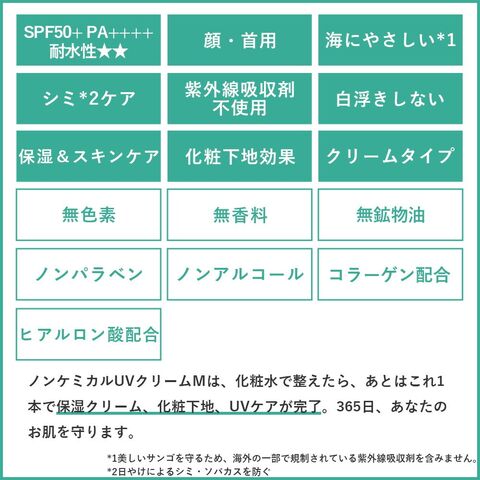 素肌も、美しいサンゴも守る 世界のビーチリゾートでは、サンゴ礁の成長に有害とされている成分を使用した日やけ止めの販売や、使用を規制する動きが広がっています。ノンケミカルUVクリームMには、海外の一部で規制されている紫外線吸収剤を使用していません。 | ご使用方法