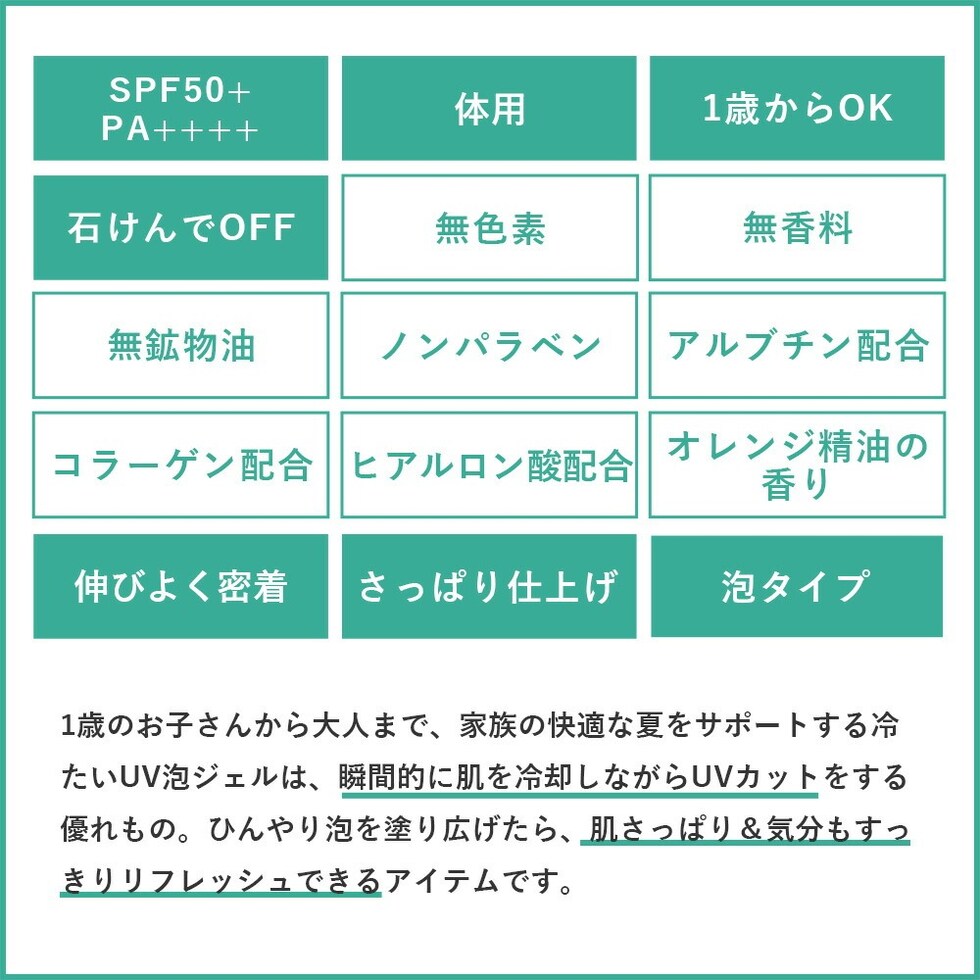 紫外線予報 冷たいUV泡ジェルF 90g SPF50+ PA++++ for family UV対策 UVケア 日焼け止め 日焼けどめ 泡ジェル 子供 子ども こども 紫外線対策 ボディケア UVカット 石澤研究所