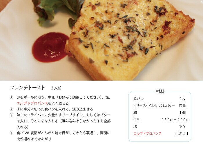 一振りで、ラベンダーやローズマリーの香り高い花ハーブが肉や魚のくさみを消すと共に料理を華やかに仕上げてくれます。オムレツなどの卵料理やドレッシングに入れてハーブドレッシングにするなど、本格的なフレンチ風味の香りと彩りをつけることができます。