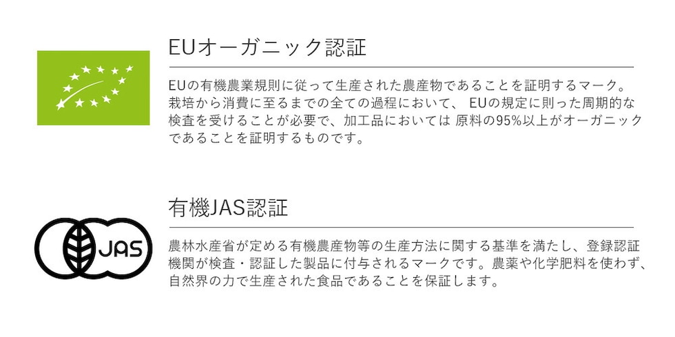 ✓ 100%オーガニック原料使用 契約農家でオーガニック栽培された原材料を丁寧に手摘みしています。オーガニックの中でも特に希少といわれるバイオダイナミック栽培の原料もできる限り取り入れ、花や実、葉、根など植物のすべてを素材として生かしています。 ✓ 保存料や人工香料不使用 手作業で収穫や加工を施されたお茶やハーブはとても質が高く、自然の香りがしっかりと残っています。人工香料は一切使用せず、原料に含まれる香料はオーガニックの原料から作られた天然香料を使用しています。 ✓ 地域と一体になった取り組み ゾネントア社の農園では、地域の人々がハーブの栽培から収穫までの農作業を行っています。このハーブ栽培はちいさな村に活気を与え、国際的な産業に発展しています。 | 取得認証