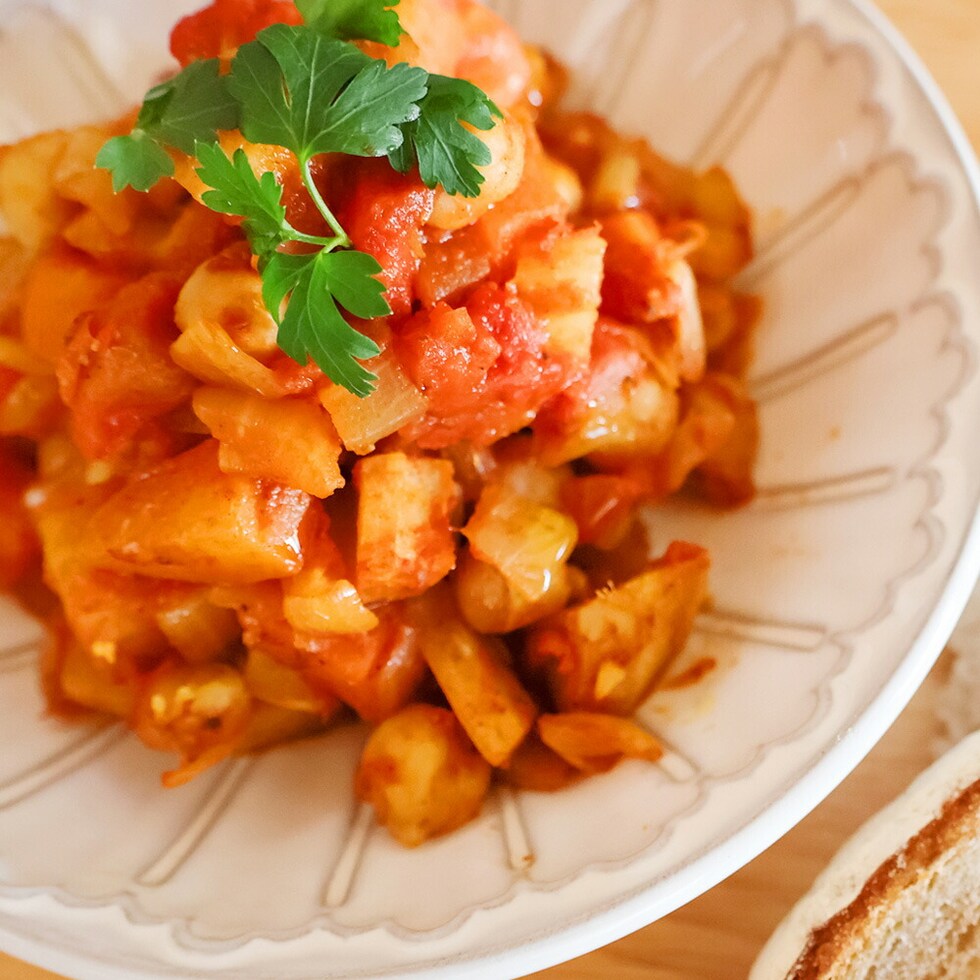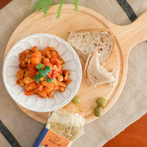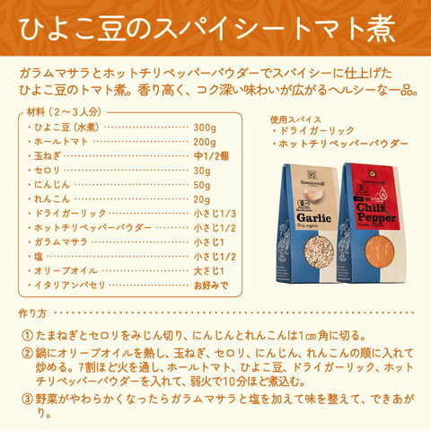 | おすすめレシピ ひよこのスパイシートマト煮 ホットチリペッパーパウダーでスパイシーに仕上げたひよこ豆のトマト煮。
