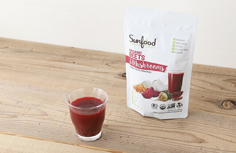 サンフード スーパーフーズ Sunfood super foods オーガニック ビーツ&マッシュルーム 150.5g│有機ビーツ冬虫夏草 ヤマブシタケ マカ マッシュルーム きのこ 鉄 甘味 美容 サポート 有機JAS エナジーのレビュー