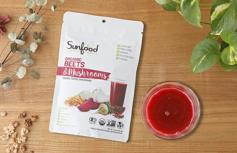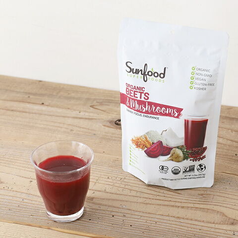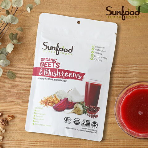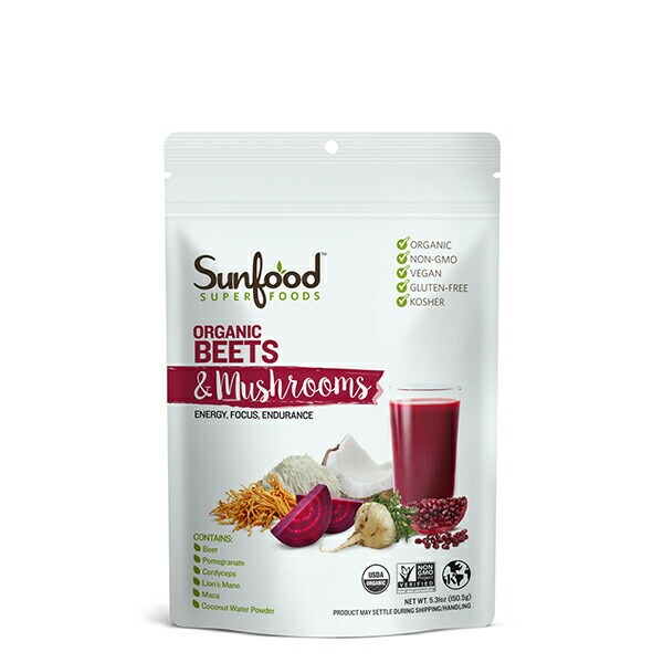 サンフード スーパーフーズ Sunfood super foods オーガニック ビーツ&マッシュルーム 150.5g│有機ビーツ冬虫夏草 ヤマブシタケ マカ マッシュルーム きのこ 鉄 甘味 美容 サポート 有機JAS エナジー