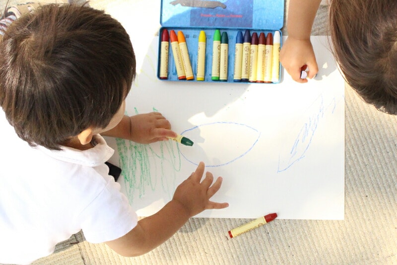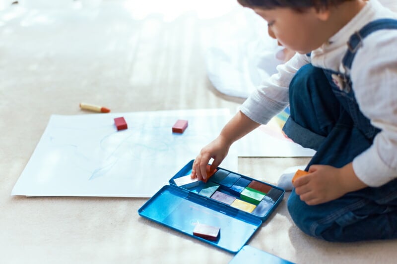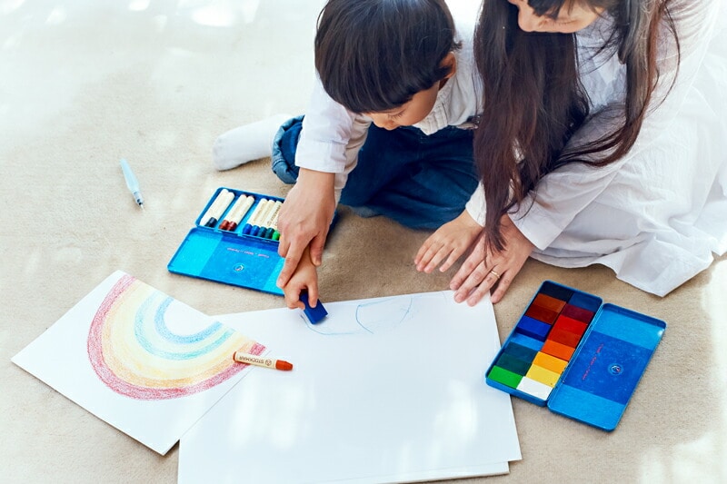 | ブロッククレヨンとスティッククレヨンの使い分けは? ブロッククレヨンは、スティッククレヨンをまだ上手に持てない、小さなお子様のために作られました。はじめはブロッククレヨンからはじめて、より繊細な表現をするようになったらスティッククレヨンに移るのがおすすめです。 | |