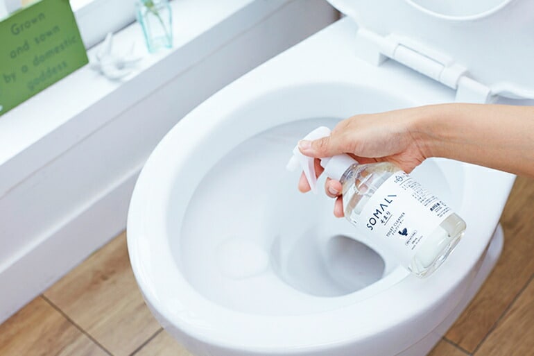| 便器内をスプレーで、便座をシートで、床や壁を雑巾で…と、意外と時間が掛かりやすいトイレ掃除。 またクリーナーに含まれている刺激の強い成分で、手がカサついたり、荒れてしまうということも… 「面倒くさい」「手が荒れる」などという理由で掃除を疎かにしていませんか?その間にも水垢や汚れなどが溜まっていきます。 本品は、これ1本で便器内、壁、床の洗浄から除菌(※)まで済ませることが出来ます。シュっとひと吹きで泡が汚れを包み込みます。 時間を取らず思い立ったらすぐ掃除もできて普段の掃除、気になった汚れにとても便利なクリーナーです。そして人と環境にも配慮した自然の素材を使っているから、敏感肌にはもちろん、お子様でも楽しく安心にお手伝いができます。 (※)すべての菌を除菌するわけではありません | |