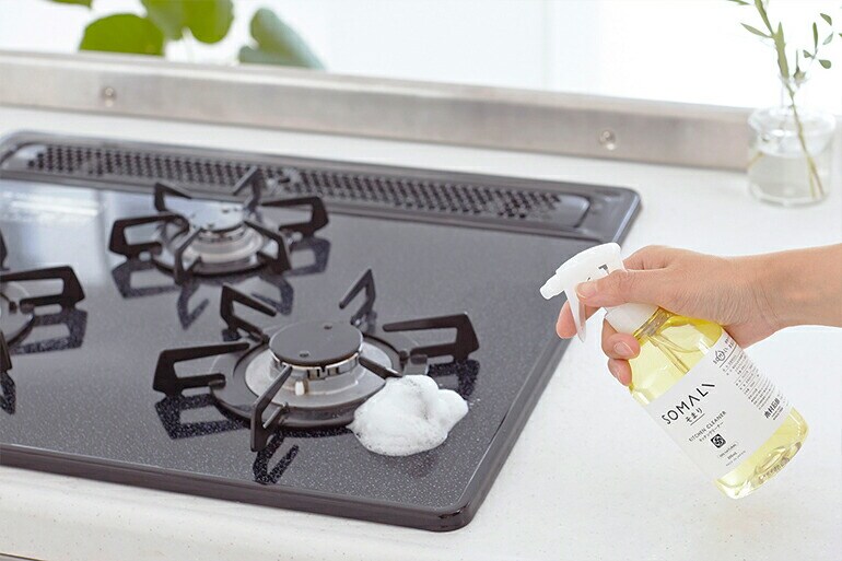 | 毎日はなかなか掃除できない換気扇やコンロなどのキッチン周り。後回しにすると余計汚れがこびりついて「どれだけ強くこすっても落ちない」「泡が垂れて掃除がしにくい…」という経験はありませんか? また、大掃除で長時間強い洗剤やお湯を使い続けると手荒れが気になってしまったり… 本品は、もっちり泡がキッチン周りの頑固な油汚れ、ヌメリにもしっかり密着し、分解してくれます。壁の落書き落とし、床ワックスの剥離にもサッとひと吹き。強力な分解力なのに、しっかり安全性も兼ね備えたクリーナー。 お子様と一緒にする大掃除はもちろん、敏感肌の方も安心して使える心強いアイテムです。 | |