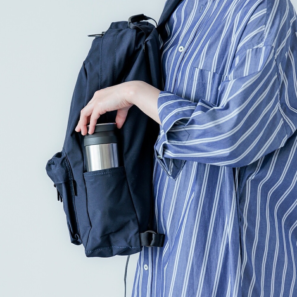 本体には耐久性のある、ナイロン40%・コットン60%のマットな質感のナイロンコットンクロスを使用。普段使いから、通勤・通学・レジャー・旅行など、幅広いシーンでお使いいただけます。