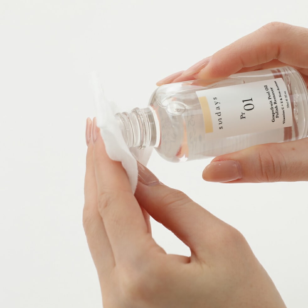 コットンに適量含ませ、爪を包み込むように押さえてしばらく置いた後、拭き取ってください。使用後は手を洗ってください。 | 爪にも環境にもやさしいsundays