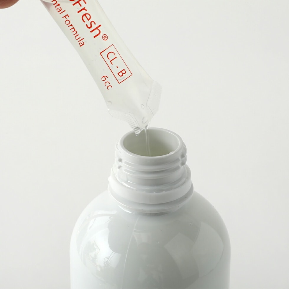 開封時に調製することでClO2を発生し、フレッシュな効果を発揮。一日中*さわやかな息をキープ。